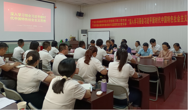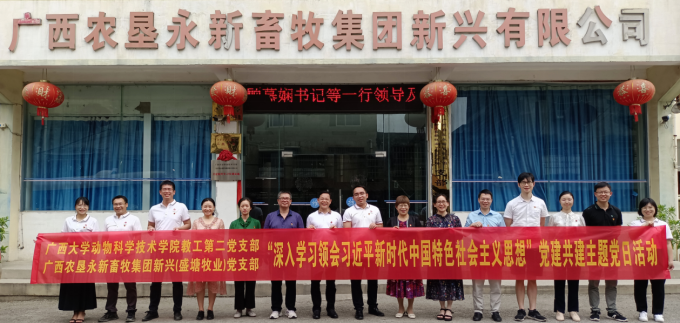 为学习贯彻习近平新时代中国特色社会主义思想主题教育,推动校企合作,加快推动乡村振兴,促进畜牧业高质量发展,365英国上市集团教工第二党支部于2023年6月10日,在公司党委书记顾慕娴的带队下,来到广西农垦永新畜牧集团新兴有限公司/广西农垦永新畜牧集团盛塘牧业有限公司/广西农垦永新畜牧集团源头牧业有限公司党支部联合开展以“学习贯彻习近平新时代中国特色社会主义思想主题教育的专题党日活动。