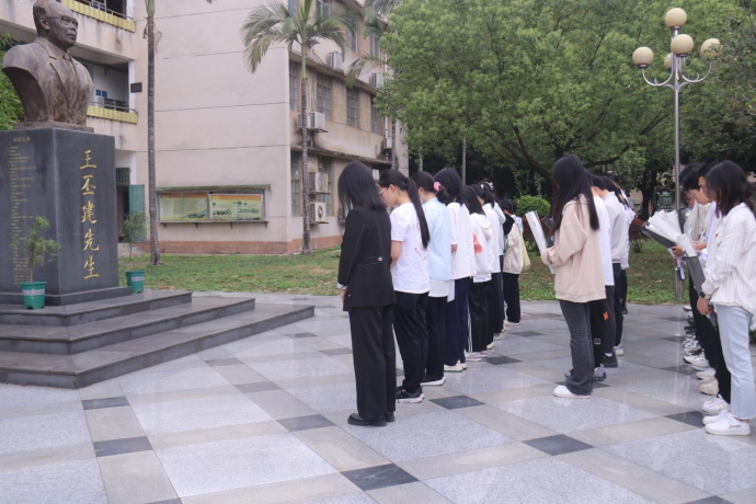 最后,师生们在王丕建教授雕像前肃立默哀,行鞠躬礼,敬献花篮。