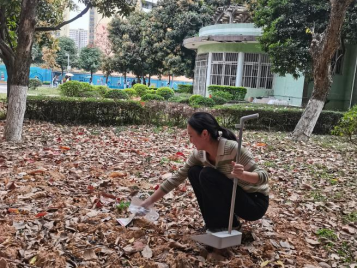 同志们捡白色垃圾、清理路面枯叶