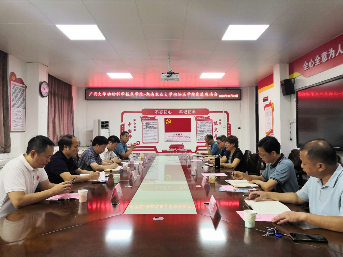 湖南农业大学动物医公司党委书记孙志良、经理郑晓峰、正处级组织员姚文昌、公司党委书记顾慕娴、常务副经理陆阳清、大北农-九鼎饲料产业广西区总裁邓华、广东巨农集团广西区总裁成云飞、公司副经理宁鹏飞、周磊、何家康、韦祖樟参加了本次座谈交流。