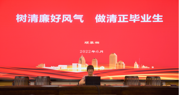 随后,公司党委书记顾慕娴作题为“树清廉好风气 做清正毕业生”的廉洁教育专题党课。他从毕业生廉洁教育的必要性、保持对‘腐蚀’‘围猎’的警觉、年轻干部违纪违法警示案例这三个部分,提醒党员不管在何种岗位,都要对党忠诚,争做廉洁守法诚信之人。最后,他向毕业生党员寄予了美好的祝愿。