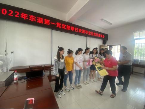 在欢送毕业生座谈会上,东退一支部书记陈熙全老师希望同学们在今后的工作中坚持群众路线,始终站在人民群众的立场上考虑问题。鼓励同学们在人生的新阶段把握机会、突破自我、迎接挑战,并诚挚邀请同学们毕业后常回母校看看。老党员农世斌、李德富老师也寄语毕业生党员,希望大家主动适应新的学习工作环境,不忘学农爱农初心,勇担强农兴农使命,在助力国家乡村振兴战略的征程中展现西大学子的风采。老党员同志们还向全体毕业生党员赠送了毕业礼物。