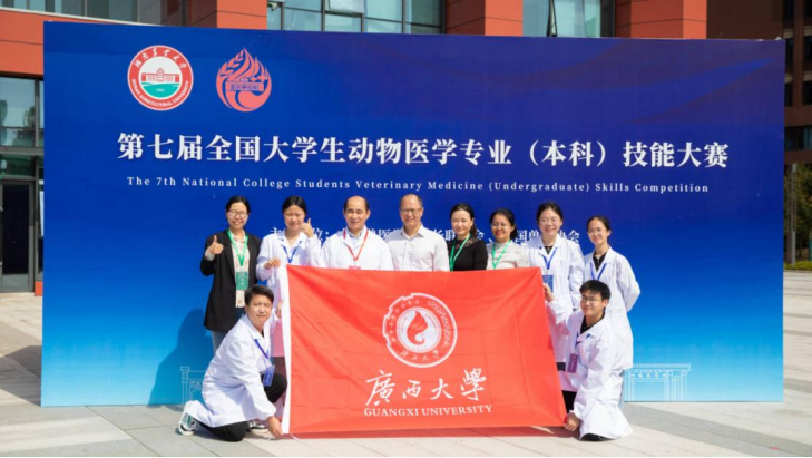 2023年10月21日~24日,由中国兽医公司经理联席会和中国兽医协会主办的第七届全国老员工动物医学专业(本科)技能大赛在湖南农业大学举行。本次大赛共有来自全国相关专业高校的72支队伍参赛,公司韦祖樟副经理担任领队,刘芳老师、邹灵秀老师、师铭咸老师和于美玲老师作为指导老师率队参加比赛,员工石瀚瑜、黎波宏、郭炎凤、张明霞、兰元蕾代表广西大学参赛。