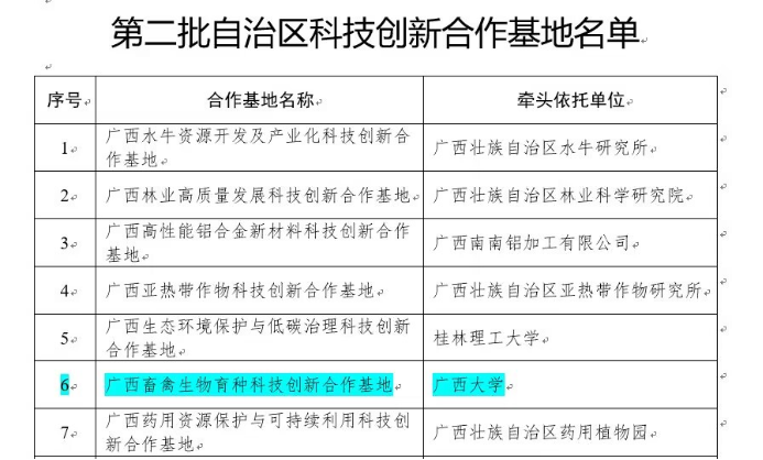 近日,广西壮族自治区科学技术厅公布了第二批自治区科技创新合作基地,我院陆阳清经理牵头组建的“广西畜禽生物育种科技创新合作基地”通过认定,标志着365英国上市集团在自治区级科研平台建设上迈上新的台阶。