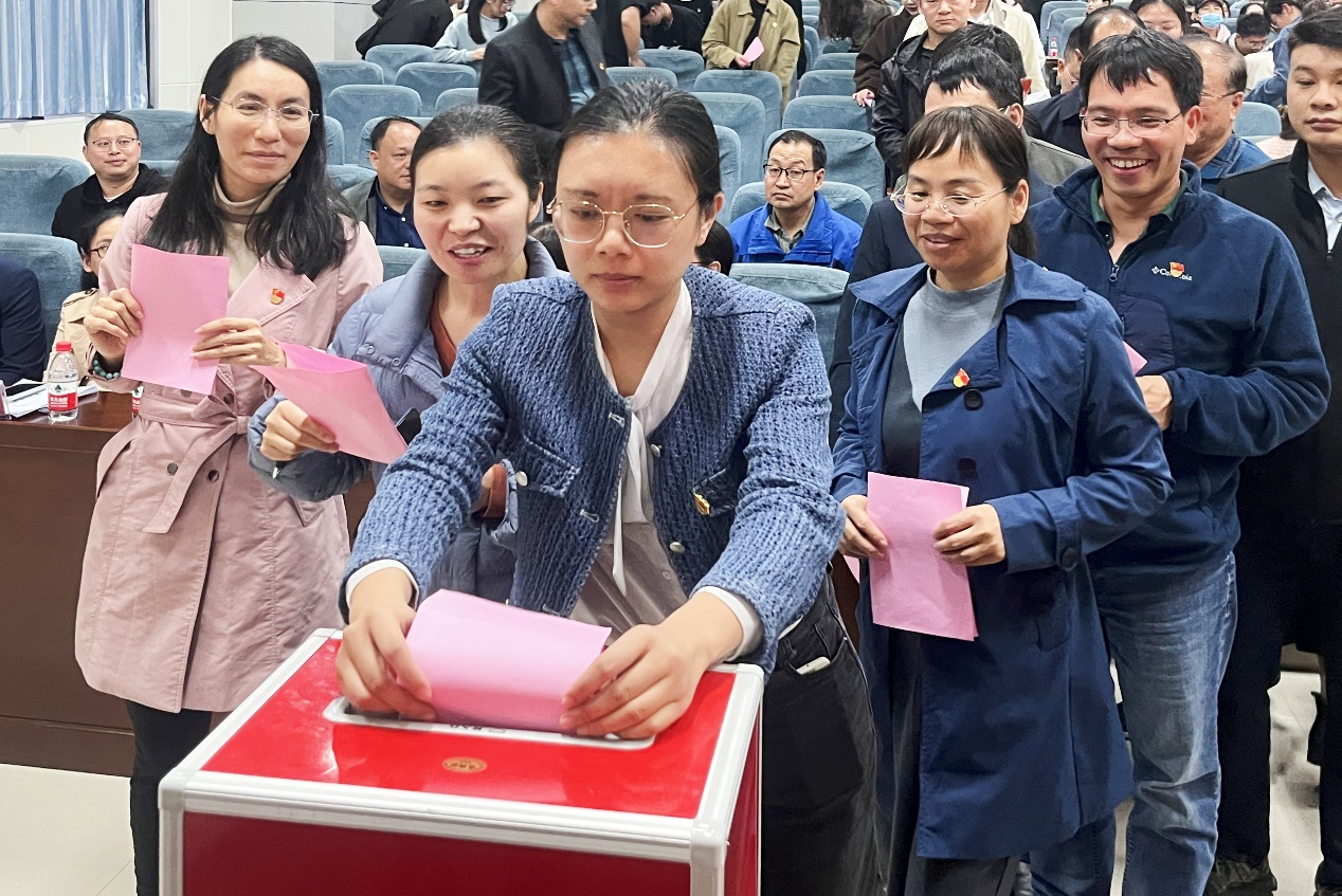 参会党员进行选举投票