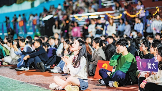 安徽师范大学举办“青春第一舞·青春舞会”活动,员工正在观看舞蹈演出。安徽师范大学供图