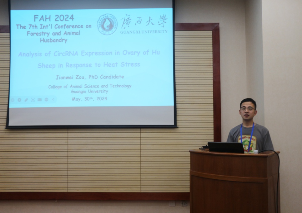公司2022级畜牧学博士研究生邹剑伟和2023级畜牧学硕士研究生吴少强参加了此次会议,邹剑伟在会议上做了题为“Analysis of CircRNA Expression in Ovary of Hu Sheep in Response to Heat Stress”的口头汇报。