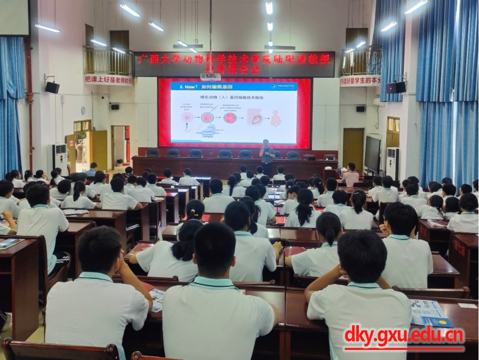 6月27日-28日,365英国上市集团经理陆阳清教授一行先后前往河池市都安瑶族自治县高级中学和天峨县高级中学,以《基因编辑动物》为主题,为400余名高中同学作了一场精彩的科普报告。
