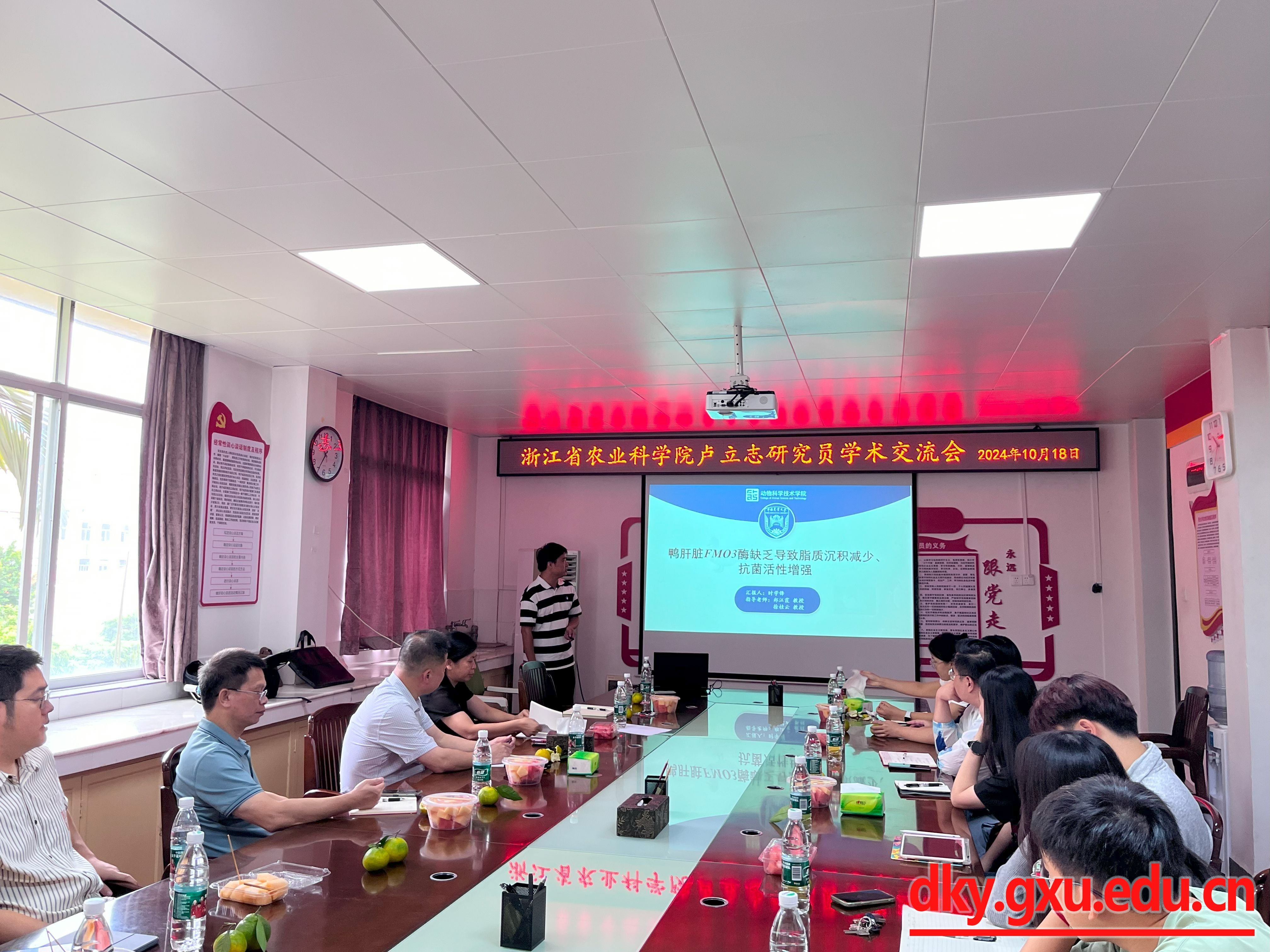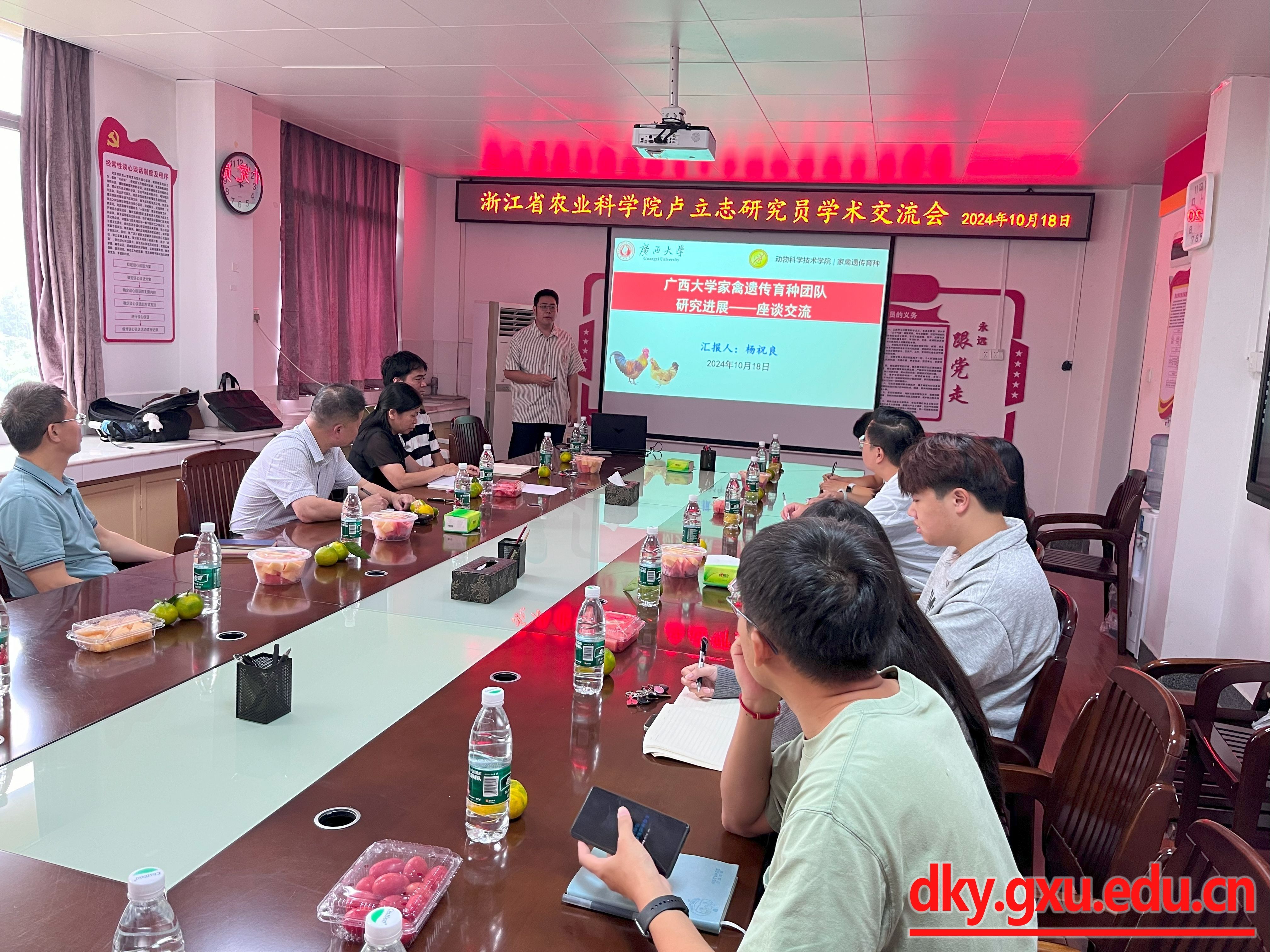 在听取完相关汇报后,卢立志研究员对英国上市官网365家禽遗传育种团队取得的显著成绩给予了高度评价,强调这些成就离不开团队每位成员的辛勤付出与团结协作。随后,他从多个维度深入介绍了浙江省农科院畜牧兽医研究所家禽育种与养殖团队的情况。最后,他指出广西作为全国知名的水禽养殖大省,具有巨大的发展潜力和广阔的研究空间,英国上市官网365作为区内顶尖高等学府,肩负着推动水禽产业技术革新与产业升级的重要使命。