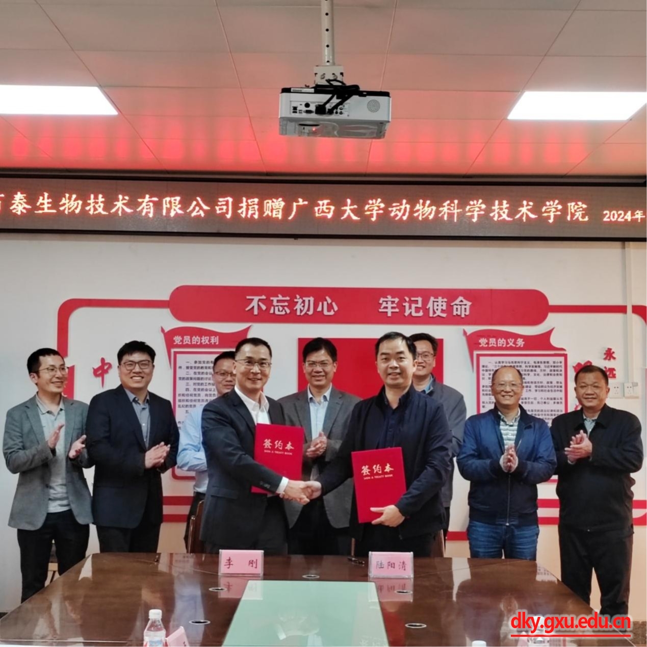 韦小强书记代表公司全体师生对北京金诺百泰生物技术有限公司的热心资助表示感谢,也感谢覃伦员工促成此事。他表示,金诺百泰公司的捐赠是对公司人才培养的支持与肯定,希望公司与公司在人才培养、科学研究方面有更深入的交流与合作,为社会培养更多优秀的高级畜牧专业人才。