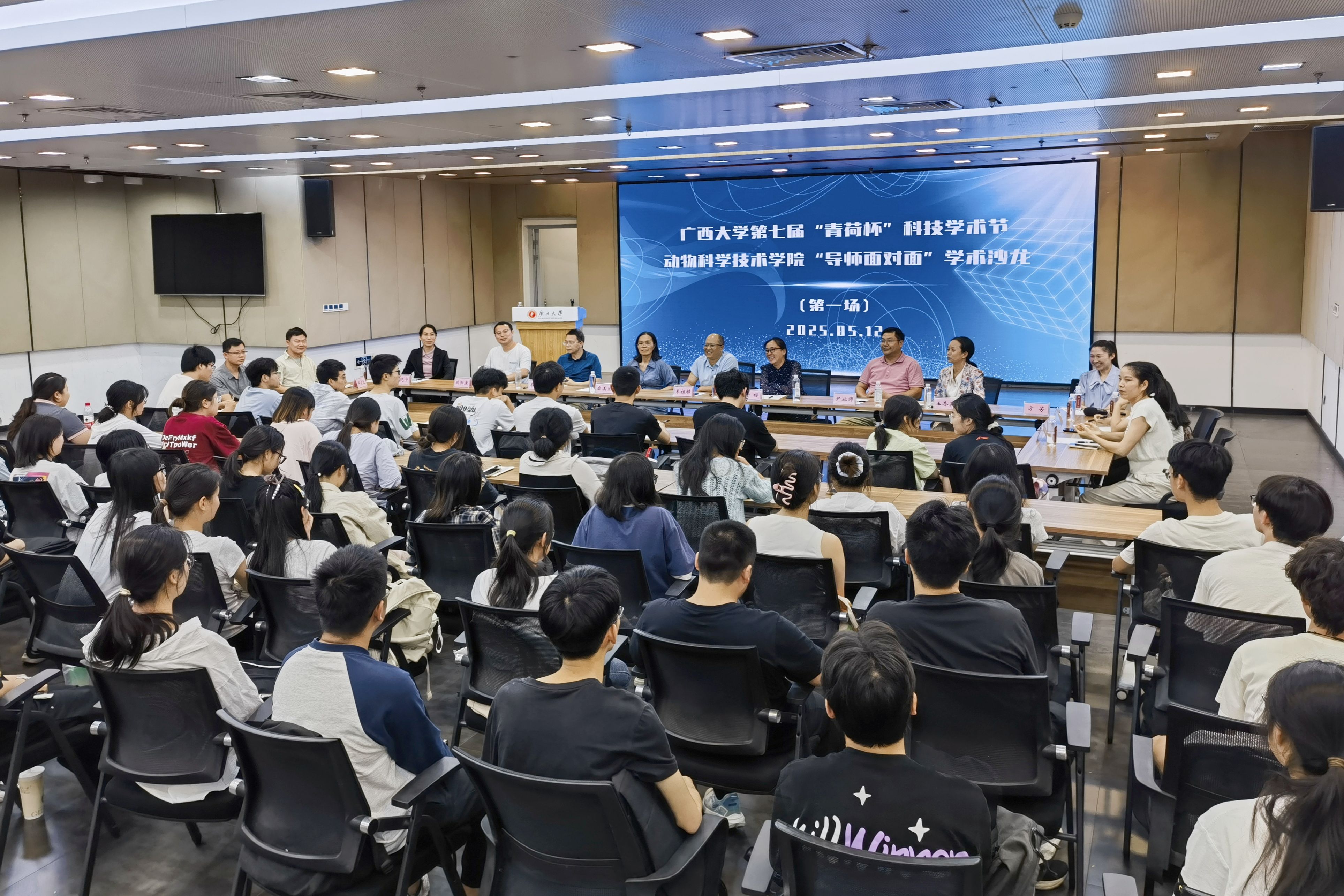 为巩固专业思想,加强学风建设,增进师生交流,营造学术氛围,5月12日晚上,365英国上市集团在老员工活动中心三楼会议厅举办第三季“导师面对面”学术沙龙(第一场),邀请韦祖樟、陈樱、磨美兰、尹业师、王冬英、韦天超、方芳、欧阳康、李晓宁、宋星桔、邸文达、黄鉴妮、覃一峰13位导师嘉宾到场分享个人经历、人才培养和科研方向,并与员工互动交流,共同探讨学业规划、职业发展和个人成长。动物医学专业2024级全体本科生参加此次活动。