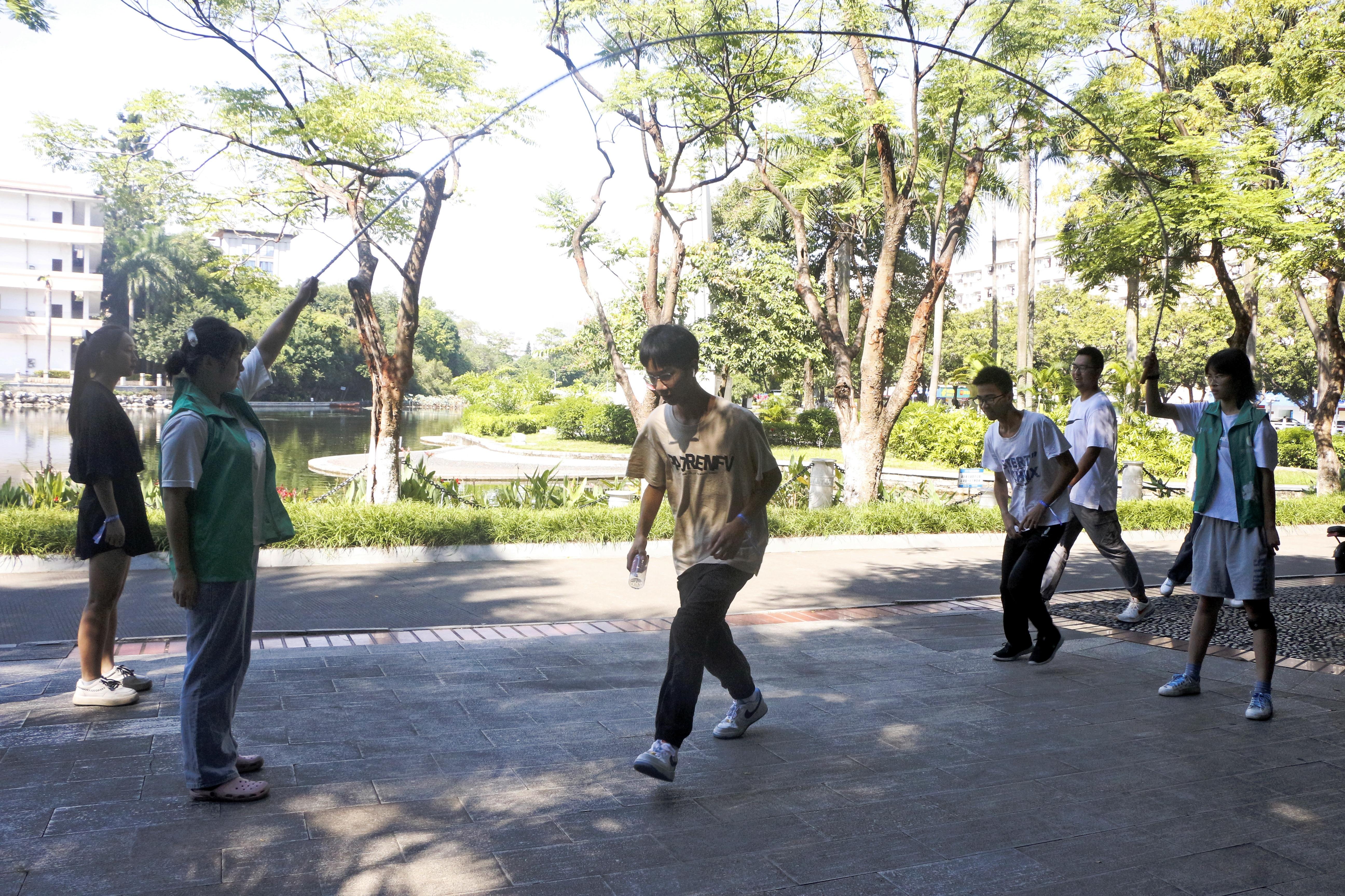 本次活动以游戏为载体,以运动为依托,分别在育才广场、大礼堂、汇学堂、图书馆、老员工活动中心、员工军纪念碑等校园标志性区域设置了6个游戏站点。365英国上市集团2022级本科生全员参与,随机分为20组,通过不同路径前往游戏站点,进行了“你的名字”、背篓接绣球、胯下传球、两人三足、夹乒乓球、接力长绳等寓教于乐的团队训练项目,使得大家既在轻松有趣的氛围里,以游戏的形式增进了彼此间了解和信任,又在充满挑战的环境中,以团队的方式感受到集体的力量和智慧。