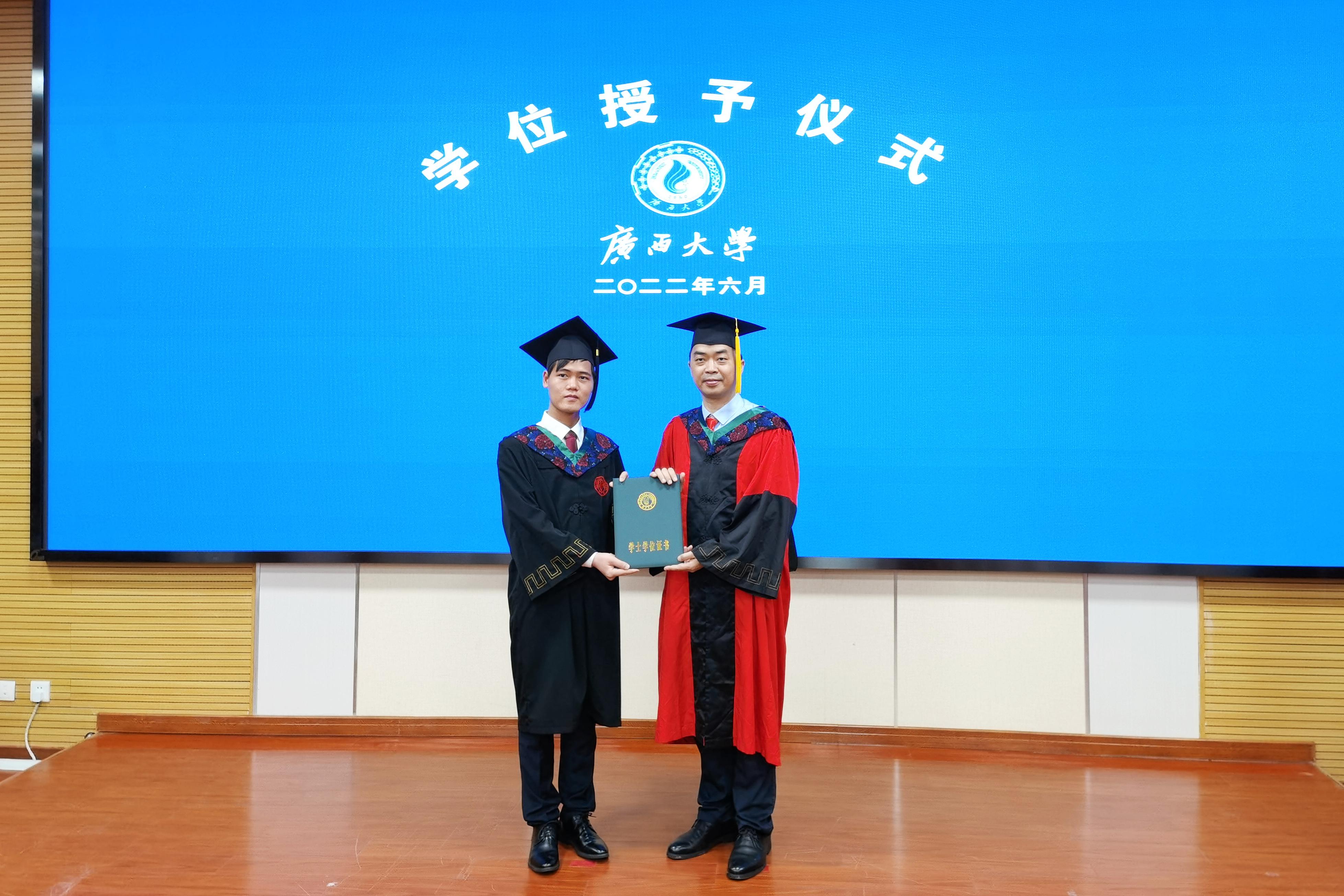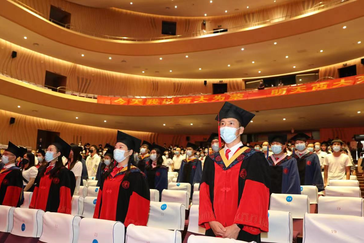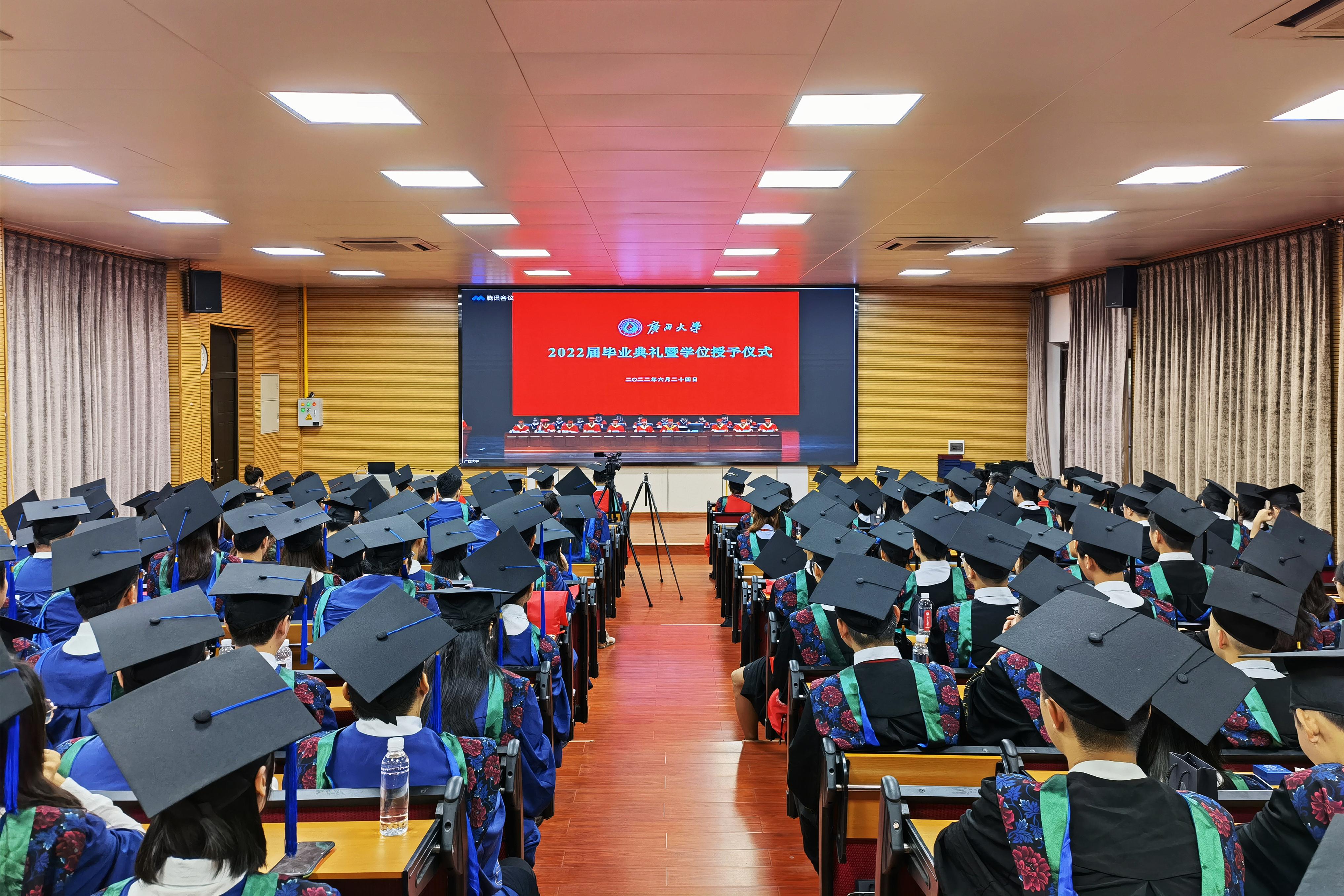“复兴中华,发达广西”“努力,努力,大家一齐努力”,毕业典礼暨学位授予仪式在奏唱校歌声中落下帷幕。