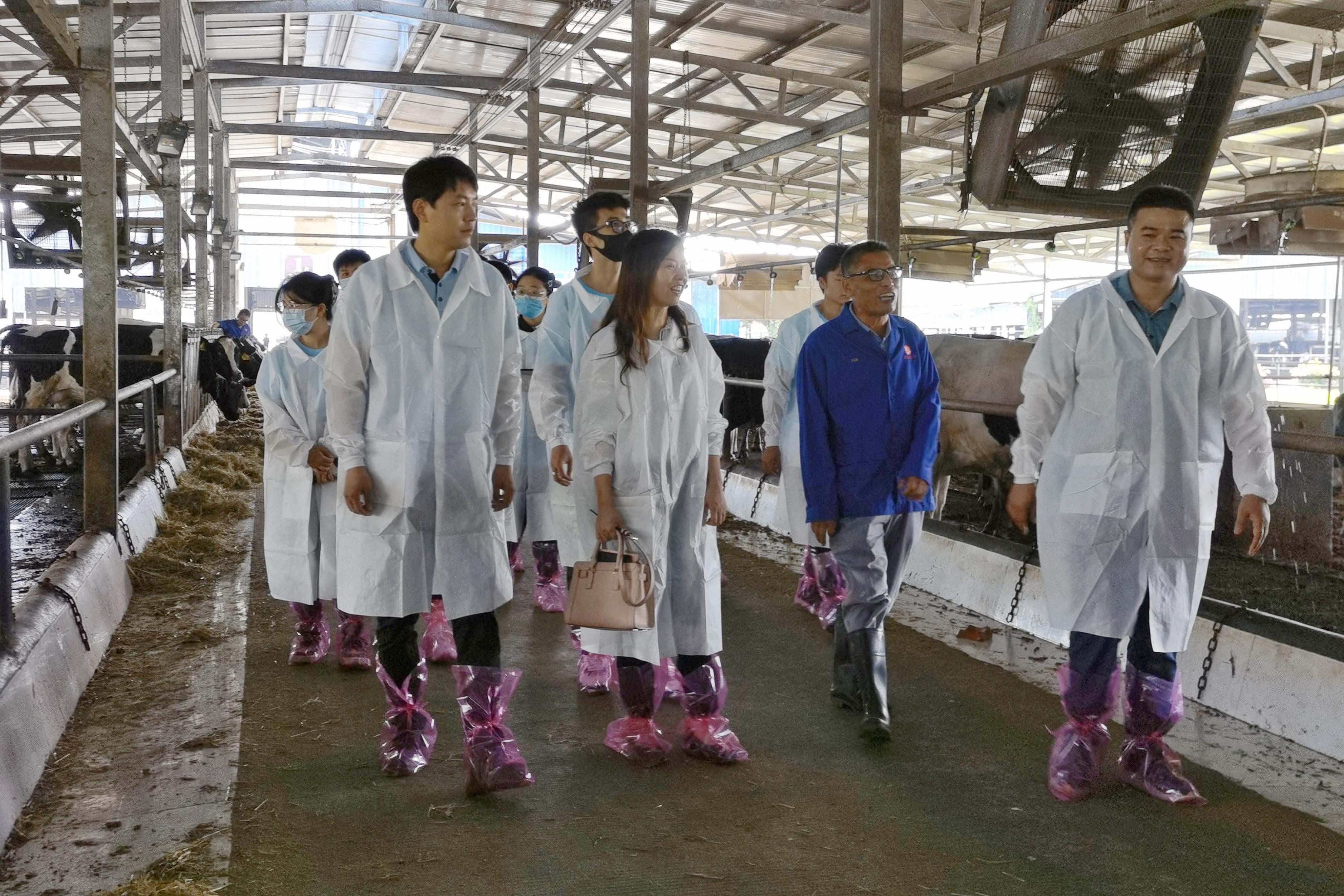 28日上午,实践团师生来到了广西特色农业现代化示范区——广西农垦西江乳业有限公司。在公司副总经理覃向生的带领下,师生们不仅参观了乳品厂的加工生产线,深入了解了其发展历程、业务板块等情况,而且走进了奶牛场,亲身体验了无排放、无臭味、无苍蝇、不扰民的现代生态养殖“西江”模式。