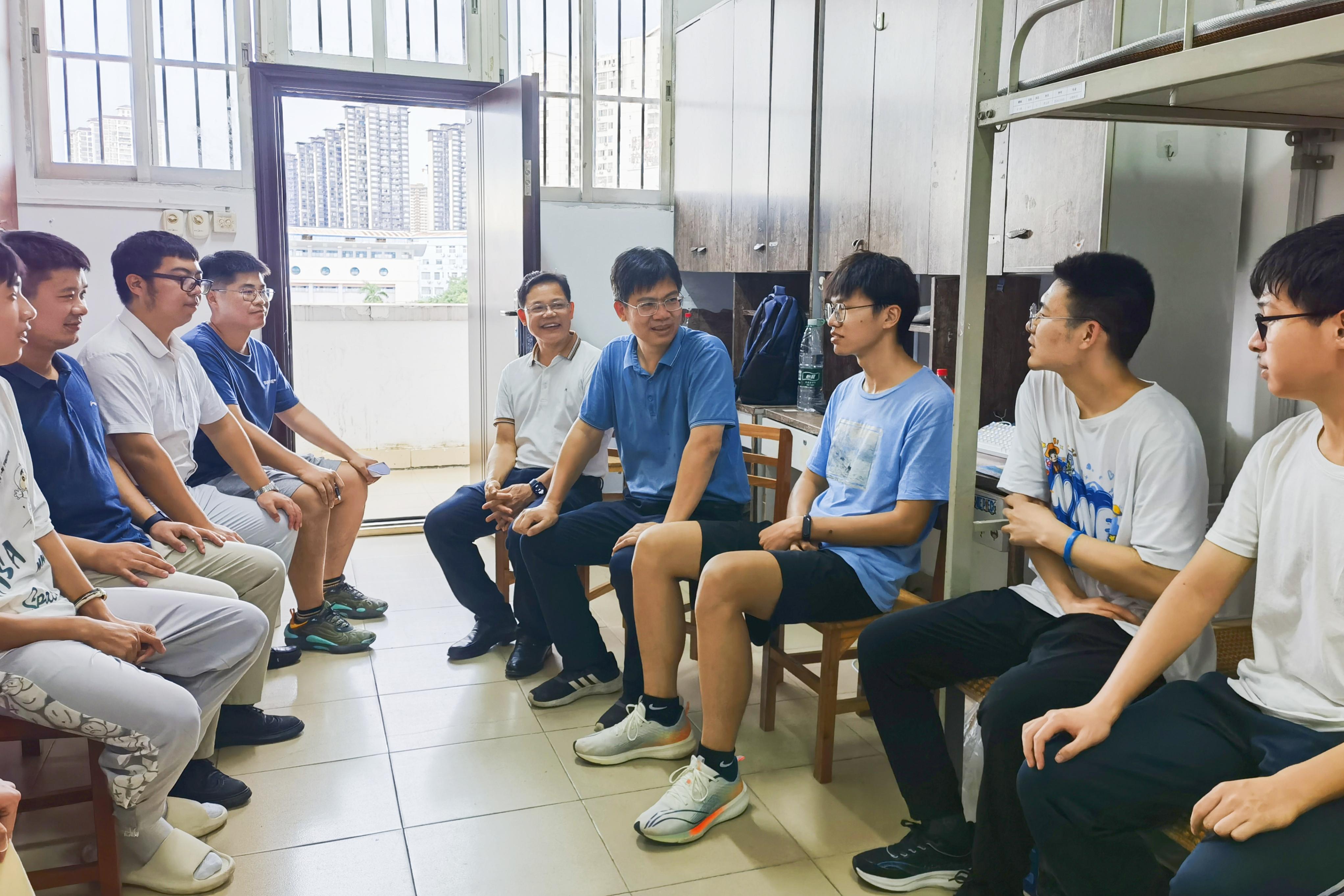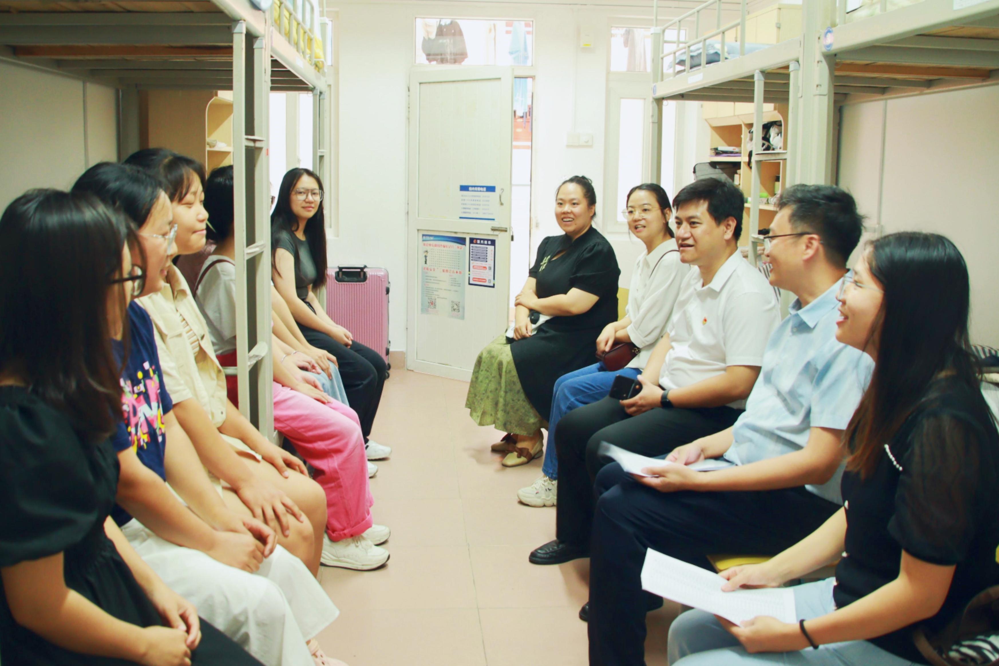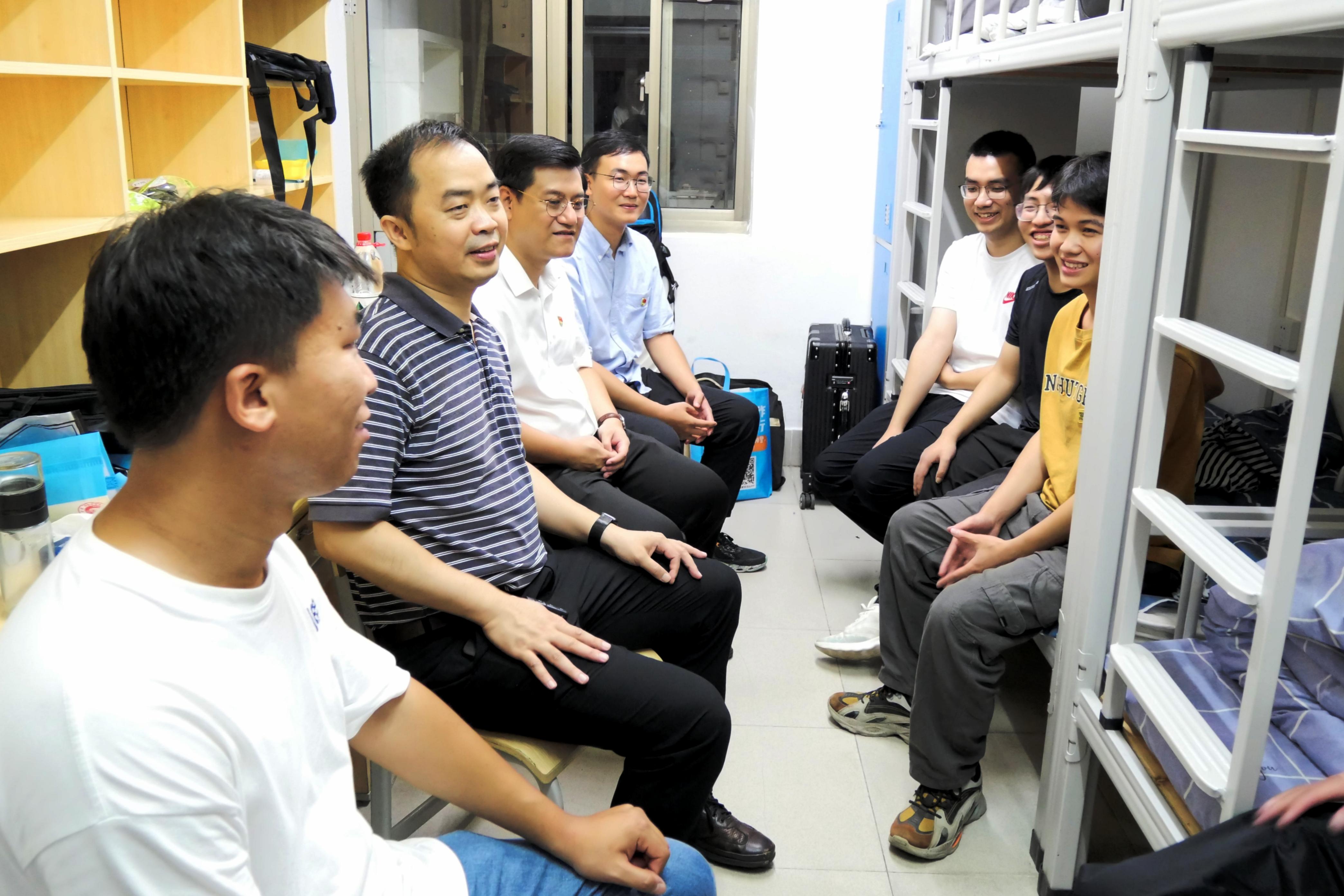 9月9、10日下午,英国上市官网365365英国上市集团党委书记韦小强,经理陆阳清,党委副书记沙建,副经理宁鹏飞、何家康、韦祖樟,经理助理、动物科学系主任蒋钦杨,动物医学系主任陈樱,团委书记李丽娜,团委副书记刘诚,辅导员彭可可、邹佳琪、马朝阳,班主任庄站伟、张瑞门、冉明霞、钟秋、韦懿仙、陈富美、牟婧、雷磊,以及团委、员工会、研究生会员工骨干,来到东1A栋、东16栋、东22栋、西21栋员工宿舍,分别走访慰问365英国上市集团2023级本科生、研究生。