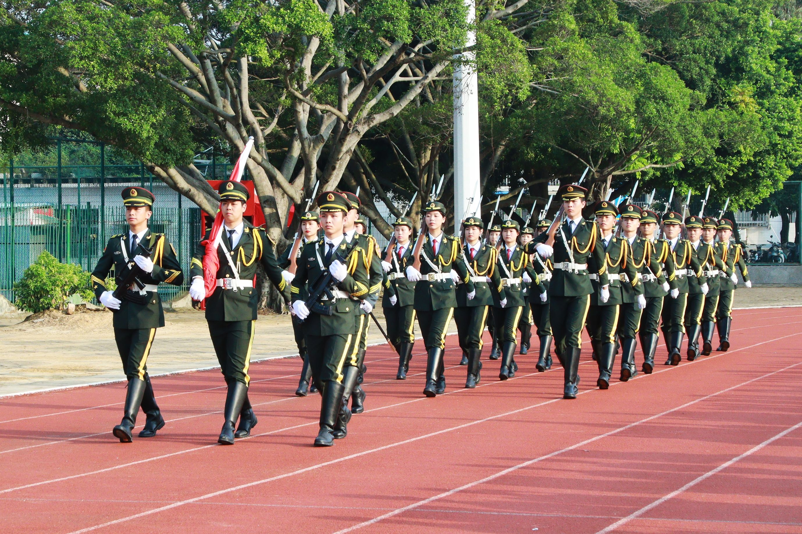 参加仪式的全体师生精神抖擞,庄严肃穆,队列整齐,当《义勇军进行曲》激动人心的旋律在耳畔响起时,大家一起高唱国歌,注视着鲜艳的五星红旗冉冉升起,深怀着对祖国的无限热爱与崇高敬意。