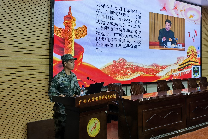 磨奕君老师就学业有帮扶、政治有荣誉、经济有补贴、发展有渠道、就业有保障五个方面详细解读了应征入伍政策,并鼓励同学们积极响应国家号召,到绿色军营中建功立业,实现自己的人生价值和梦想。