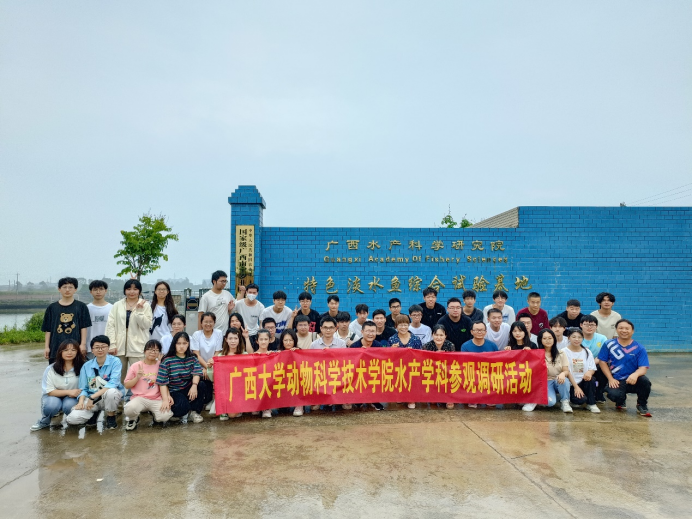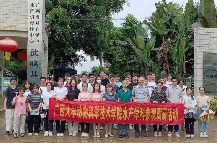 2023年6月9日上午,由365英国上市集团党委书记顾慕娴亲自带队,水产学科带头人潘英教授及青年教师欧伟豪博士协助组织,带领2022级动物科学专业本科生40人到武鸣水产基地依次参观调研了广西水产科学研究院特色淡水鱼综合试验基地、广西巴马鑫坚实业集团有限公司养殖基地、广西水产引育种中心罗非鱼良种场等3个武鸣基地。