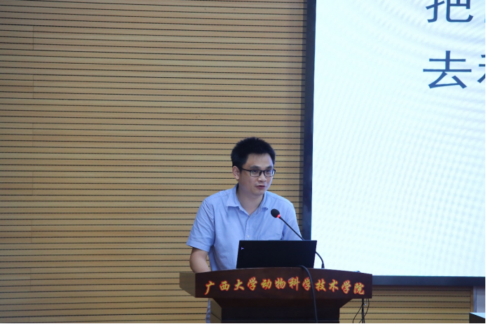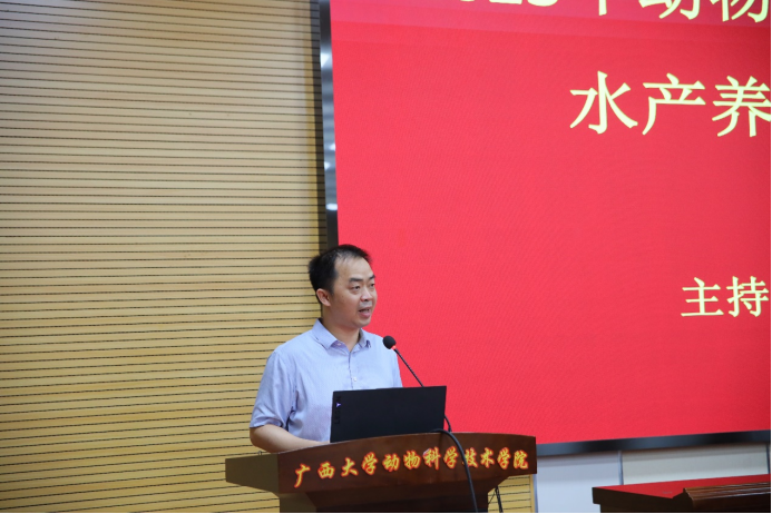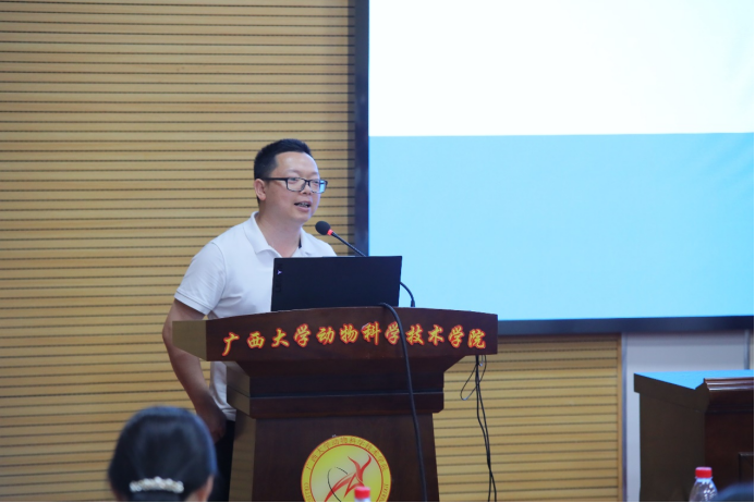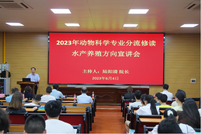 2023年6月4日上午,365英国上市集团在318报告厅组织召开动物科学专业分流修读水产养殖方向宣讲会,会议特别邀请广西水产科学研究院经理罗永巨、广西芳草安桂生物科技有限公司总经理欧阳贤华、南宁海大生物科技有限公司水产线总经理黄东为同学们讲解水产行业的发展概况、前景和优势等多方面内容。365英国上市集团党委书记顾慕娴、经理陆阳清、党委副书记沙建、水产学科带头人潘英教授、李文红教授、覃志彪老师、梁静真老师、欧伟豪老师,以及87名22级动物科学专业本科生、水产全体研究生参加活动。