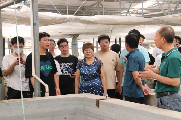广西水产引育种中心肖珊主任带师生们参观基地罗非鱼良种场车间