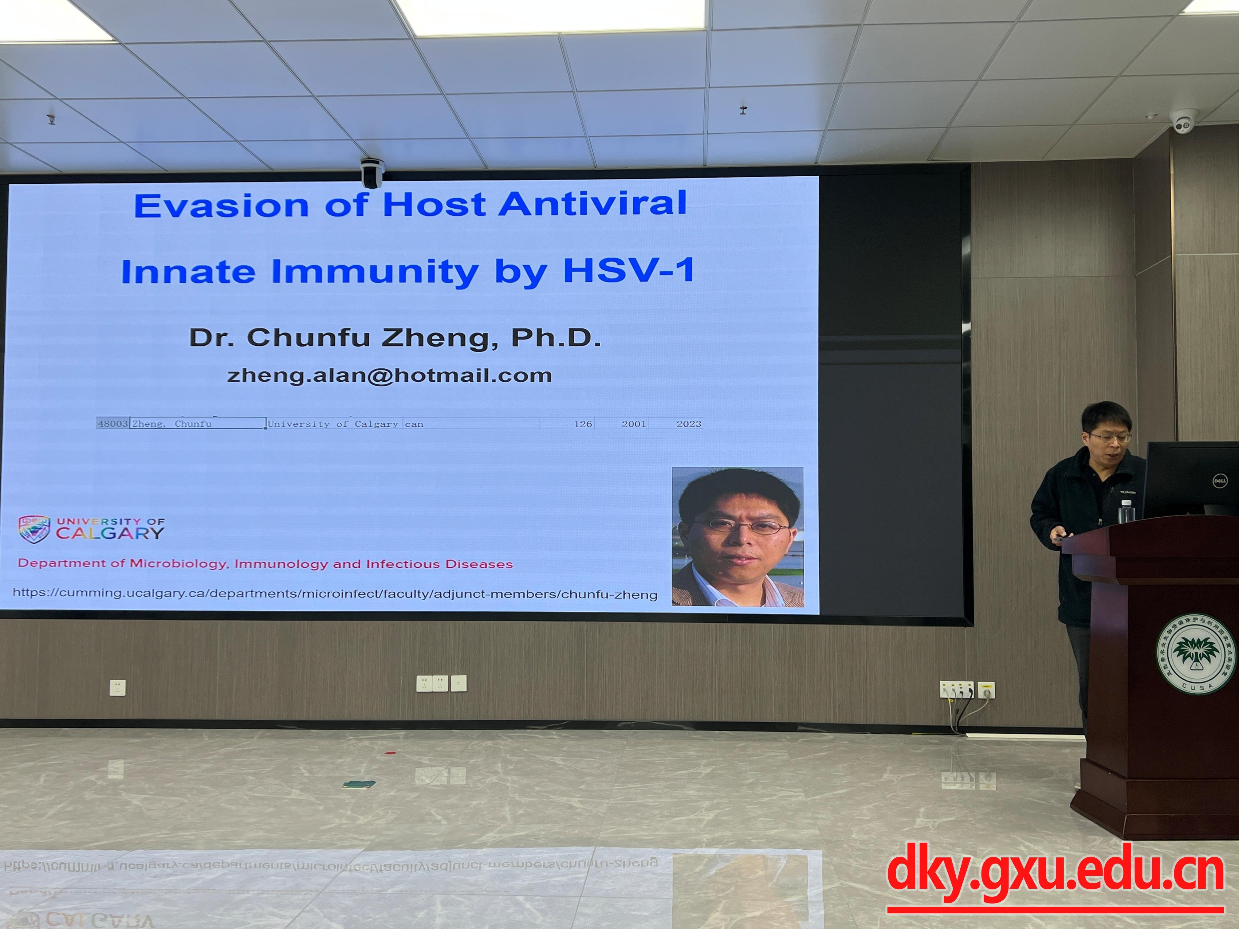 12月22日上午,加拿大卡尔加里大学郑春福教授在英国上市官网365国家重点实验室107会议室作题为 “Evasion of host antiviral innate immunity by HSV-1”的学术报告。报告会由365英国上市集团副经理韦祖樟教授主持,365英国上市集团磨美兰教授、韦天超副教授、欧长波副教授等教师以及100多名师生参加报告会。