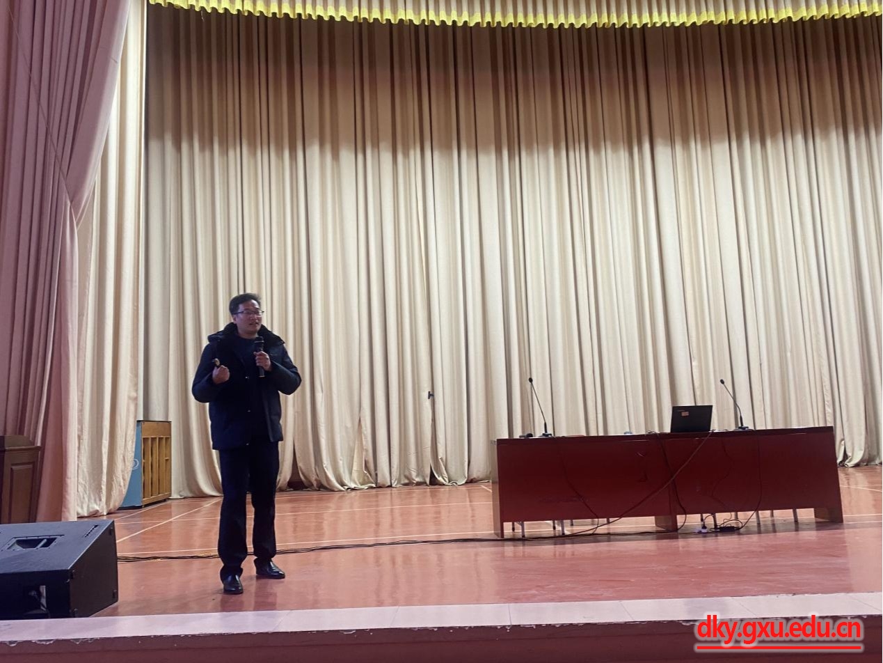 为切实提升英国上市官网365本科生生源质量,吸引更多优秀学子到公司深造,12月21日,365英国上市集团党委书记韦小强带队,副经理何家康、副经理蒋钦杨、团委书记李丽娜、教学秘书覃志彪、专职组织员施君一行六人前往自治区示范性公司荔浦中学开展招生宣传。荔浦中学高三年级400余名员工及班主任老师在公司报告厅聆听宣讲报告。